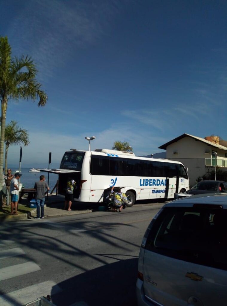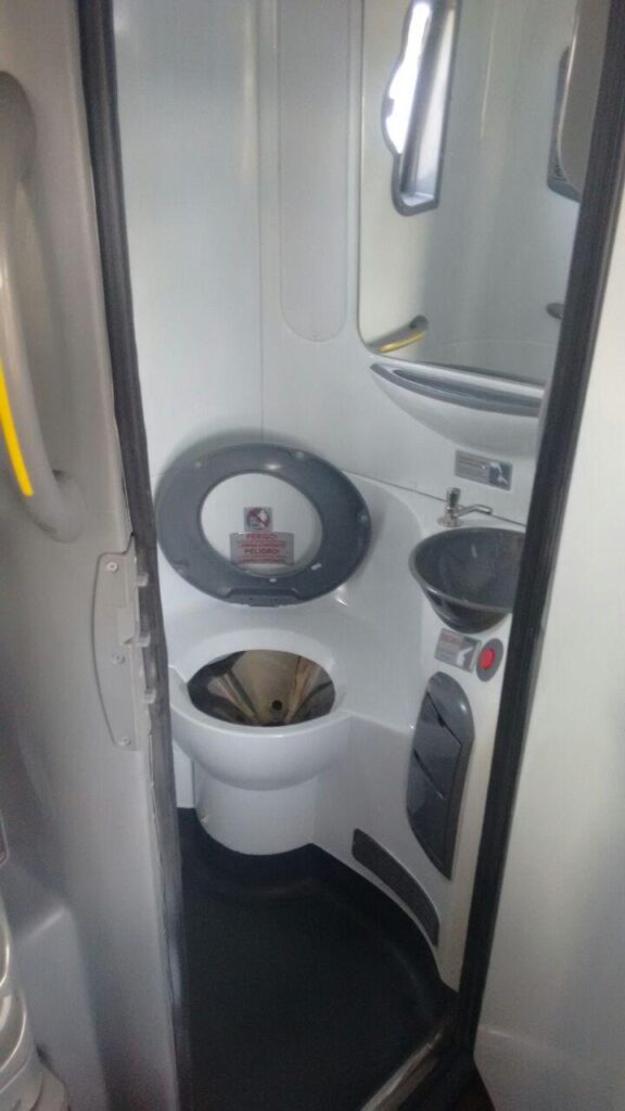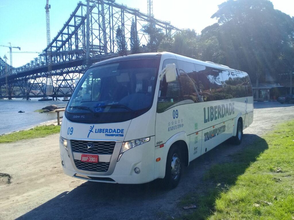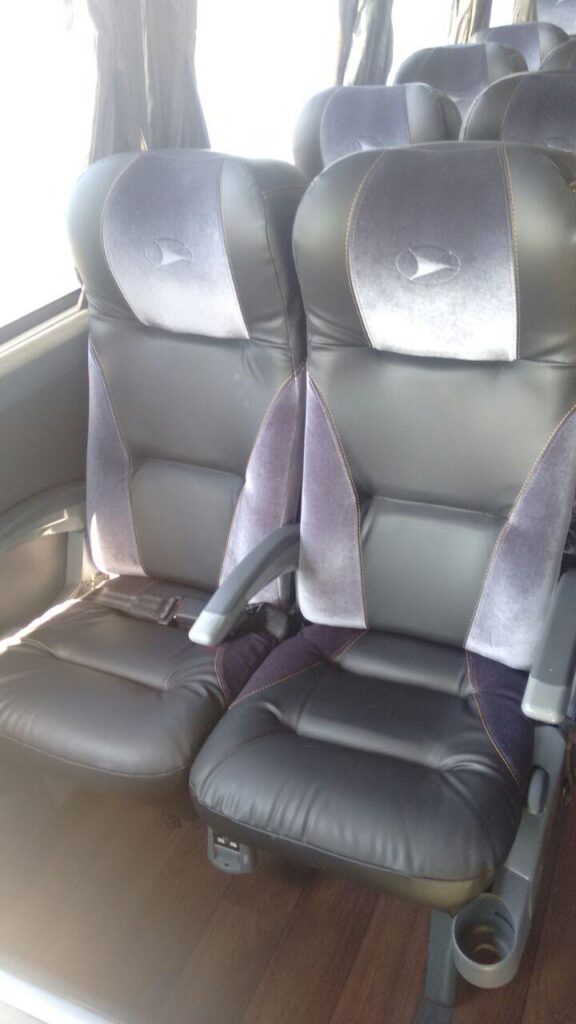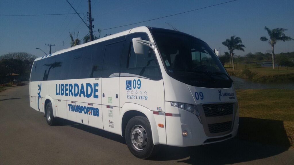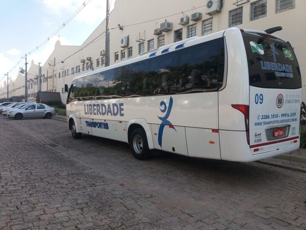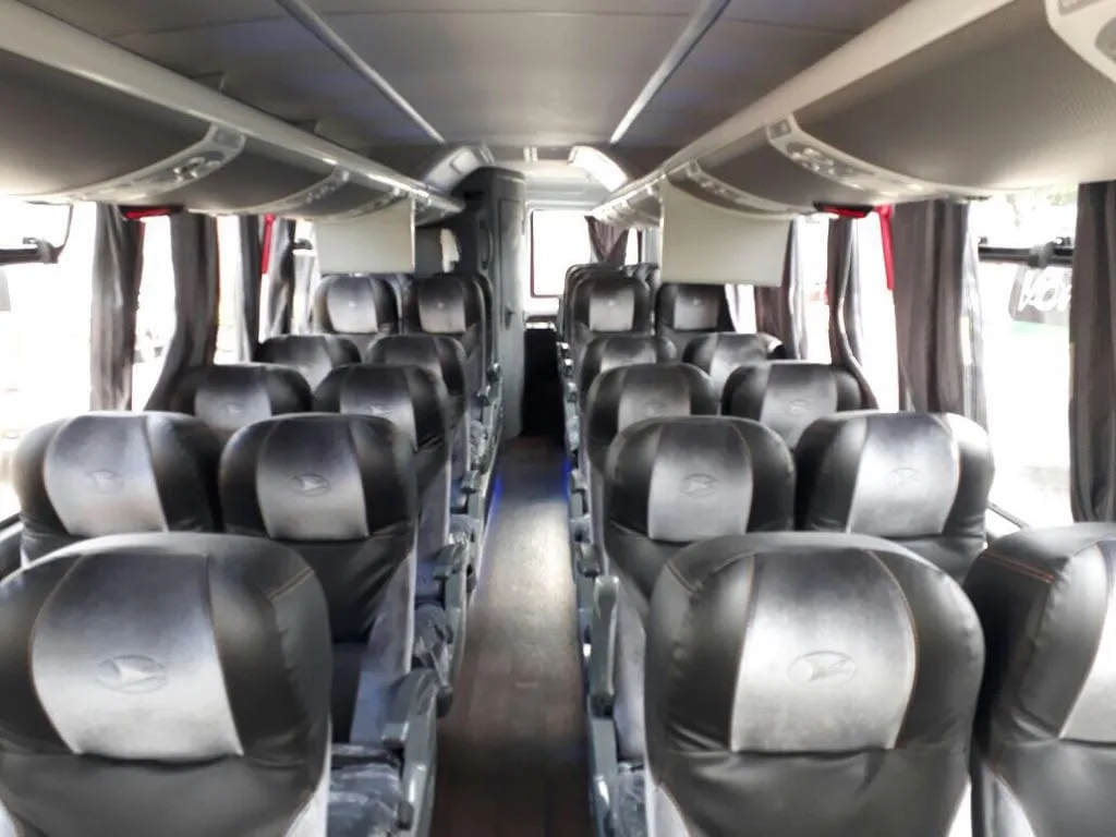 Micro 30 lugares com ar condicionado e banheiro.